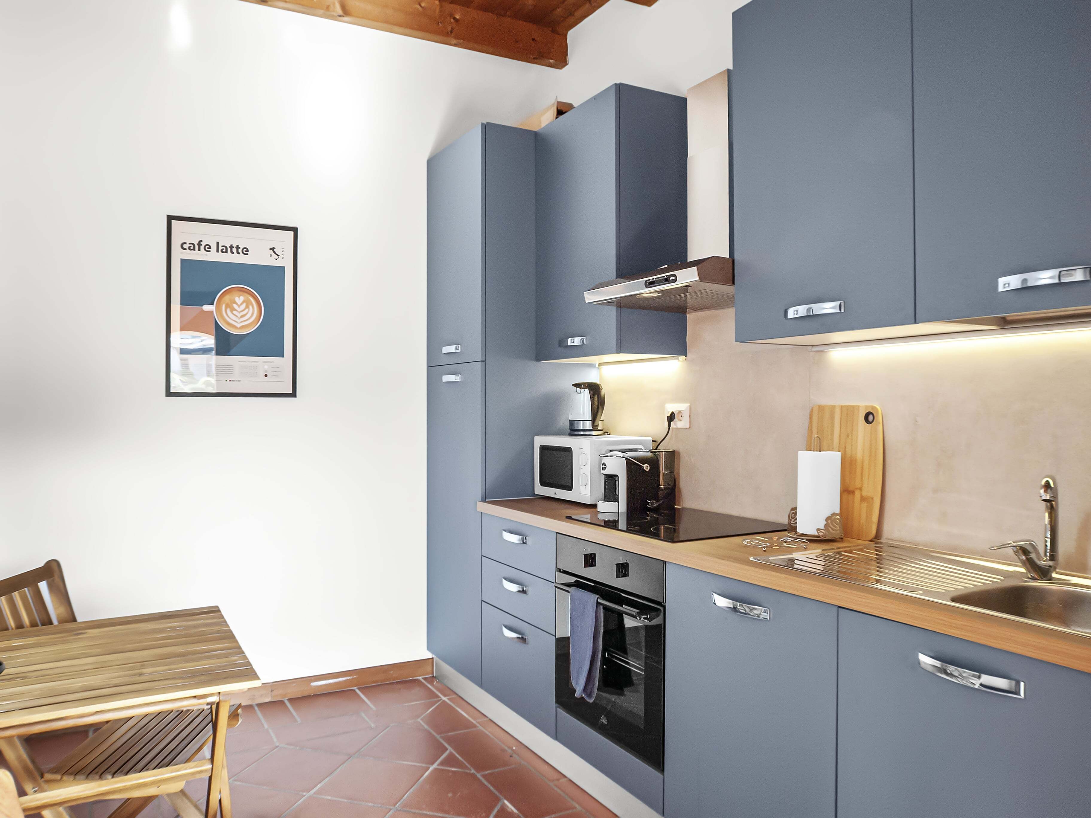W kuchni przygotujesz śniadanie z lokalnych składników, a wieczorem – kieliszek wina na tarasie, pod cyprysami.