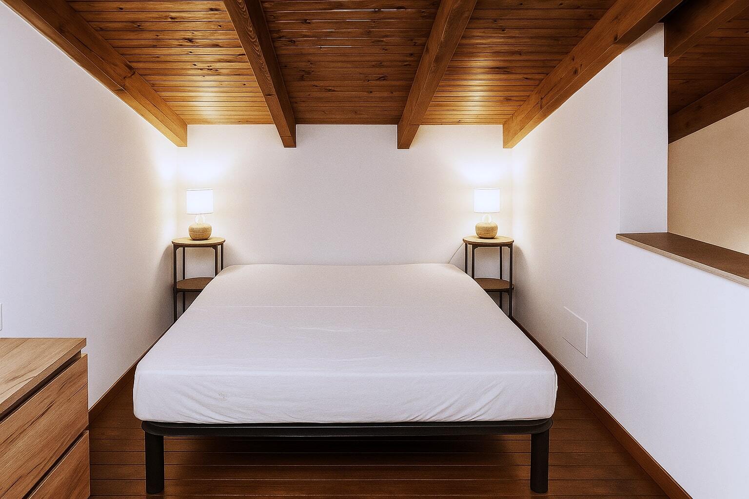 Willa ma 3 sypialnie, dwie zlokalizowane na parterze i jedną na piętrze, oraz 2 łazienki. Duży, jasny salon ze Smart Tv i bezpośrednim wyjściem na ogród i przestronną, zadaszoną werandę tworzy doskonałą przestrzeń do wypoczynku.